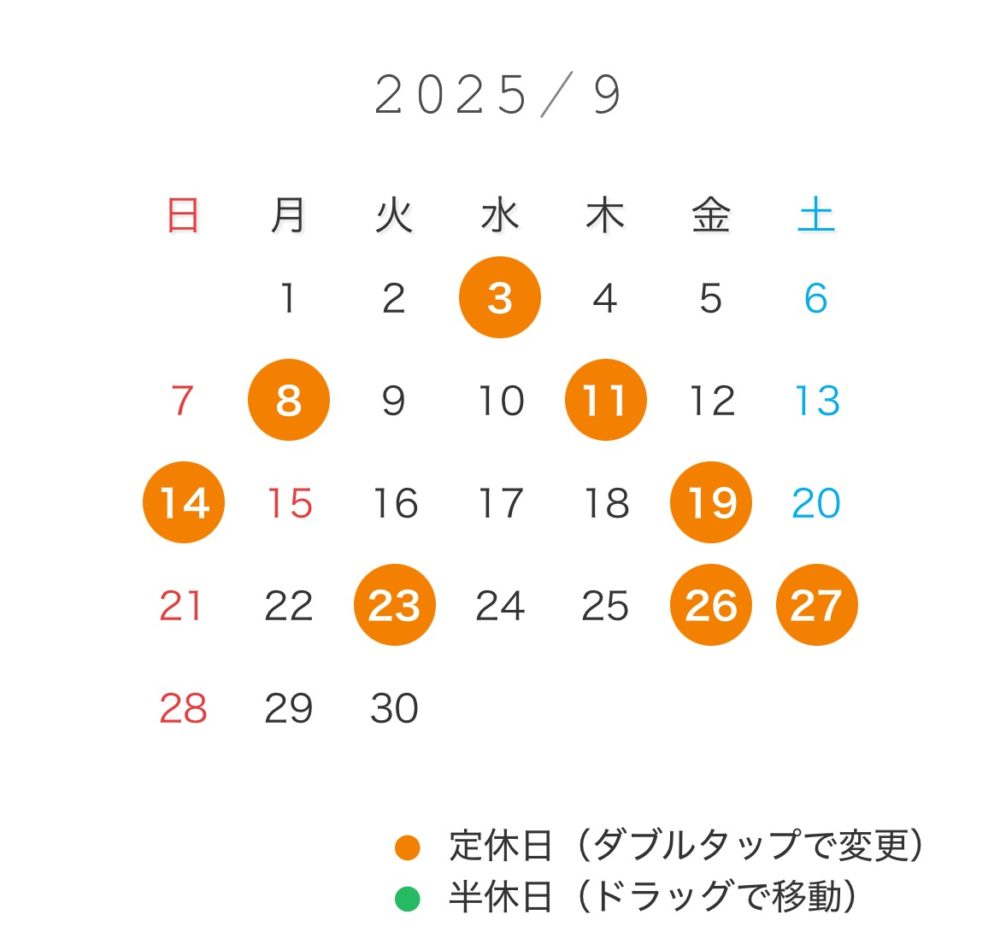 今回は9月、10月のお知らせになりますがご希望に応じて11月、12月のご予約もご案内可能ですのでご要望の際はお問い合わせもお待ちしております🙇‍♂️